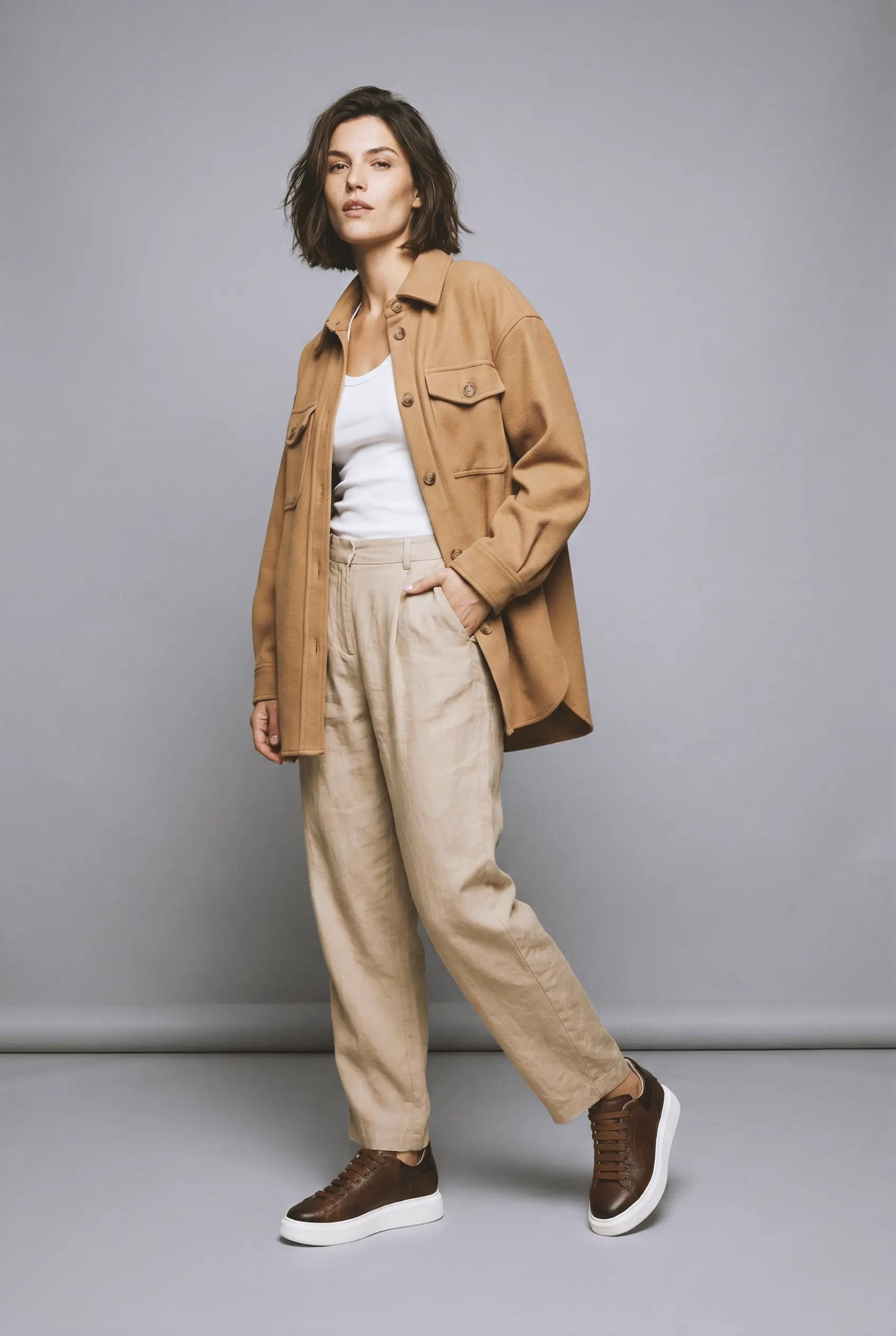 Bezvremenska čokoladno braon nijansa u kombinaciji sa zrnastom teksturom kože i diskretnim detaljem na peti, na čistom belom platform đonu za maksimalan kontrast.