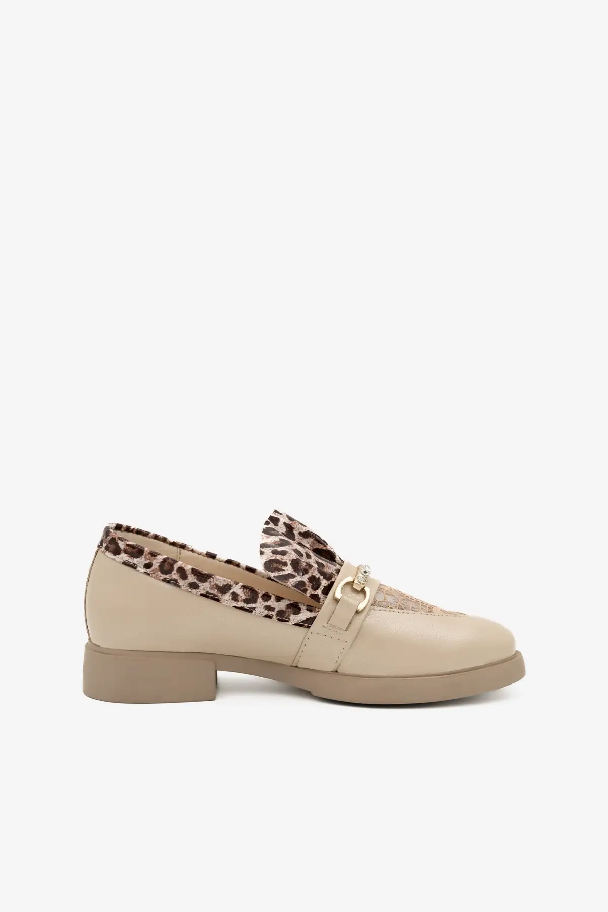 Mokasine od prirodne kože sa diskretnim animal print panelima i metalnom šnalom na povišenom đonu.