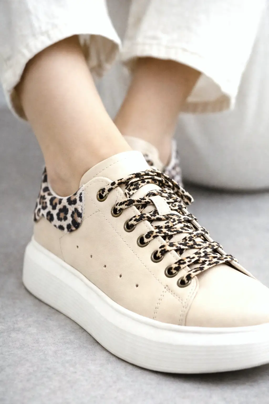 Kožne patike sa diskretnim animal detaljem i naglašenim đonom. Dizajnirane za svakodnevno nošenje.